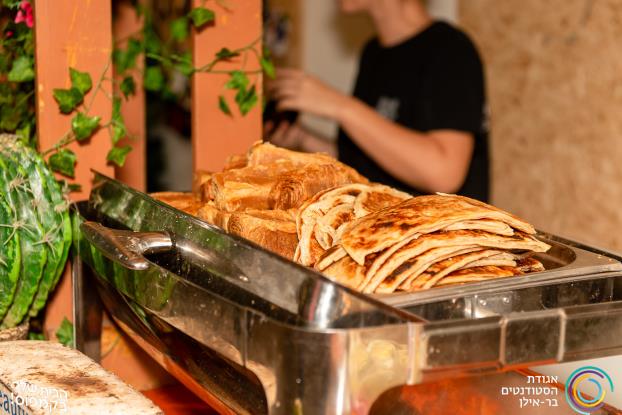 דוכן פיתה דרוזית אותנטית על סאג' הכולל פיתה עם לאבנה, זעתר זיתים ושמן זית. ניתן להזמין גם שוקולד השחר / נוטלה