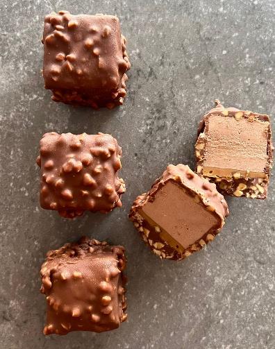 מלבי שמנת / פרווה עם תוספות מתוקות: בוטנים קצוצים, קוקוס, קוקוס קלוי ומי ורדים.