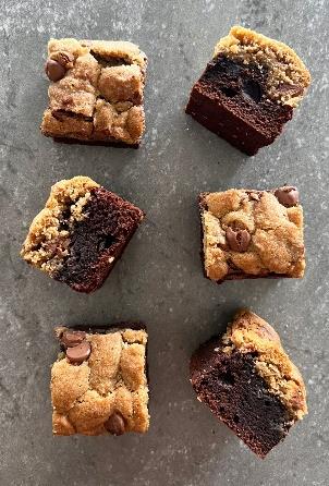 שכבת בראוניז ומטבעות שוקולד חלב שכבת בצק עוגיות ושוקולד חלב • מתאים לנשים בהריון • מגיל גלוטן