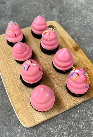 עוגיות פאדג' במילויי גלידה לבחירה ובתוספות של סוכריות צבעוניות, סוכריות שוקולד, קוקוס רגיל, קוקוס קלוי, שברי עוגיות אוראו, סירופ שוקולד, מייפל ותות.